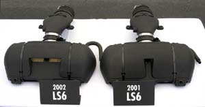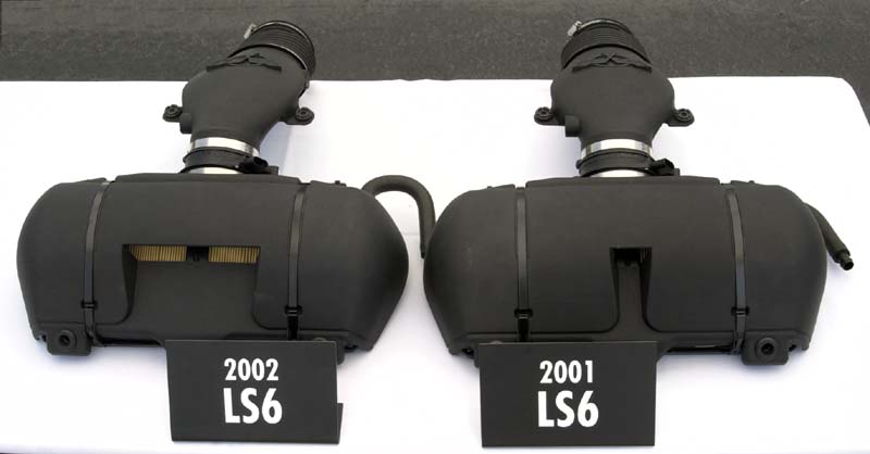 A side-by-side of the ’02 and ’01 air filter assembly shows their difference.