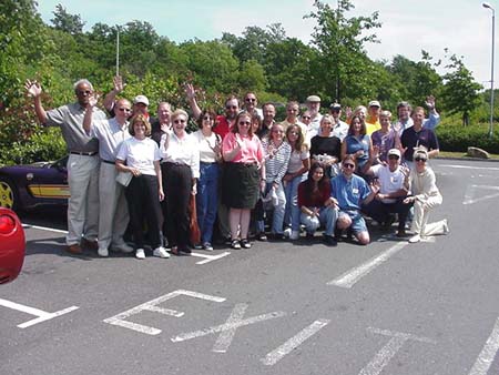 C5 group look amazingly cheerful despite a 2 hour hold up on the notorious London M25 Orbital (beltway)