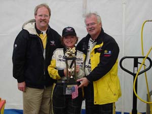 Jake with Robin and Gary Pratt with the coveted 24 Heures du Mans GTS