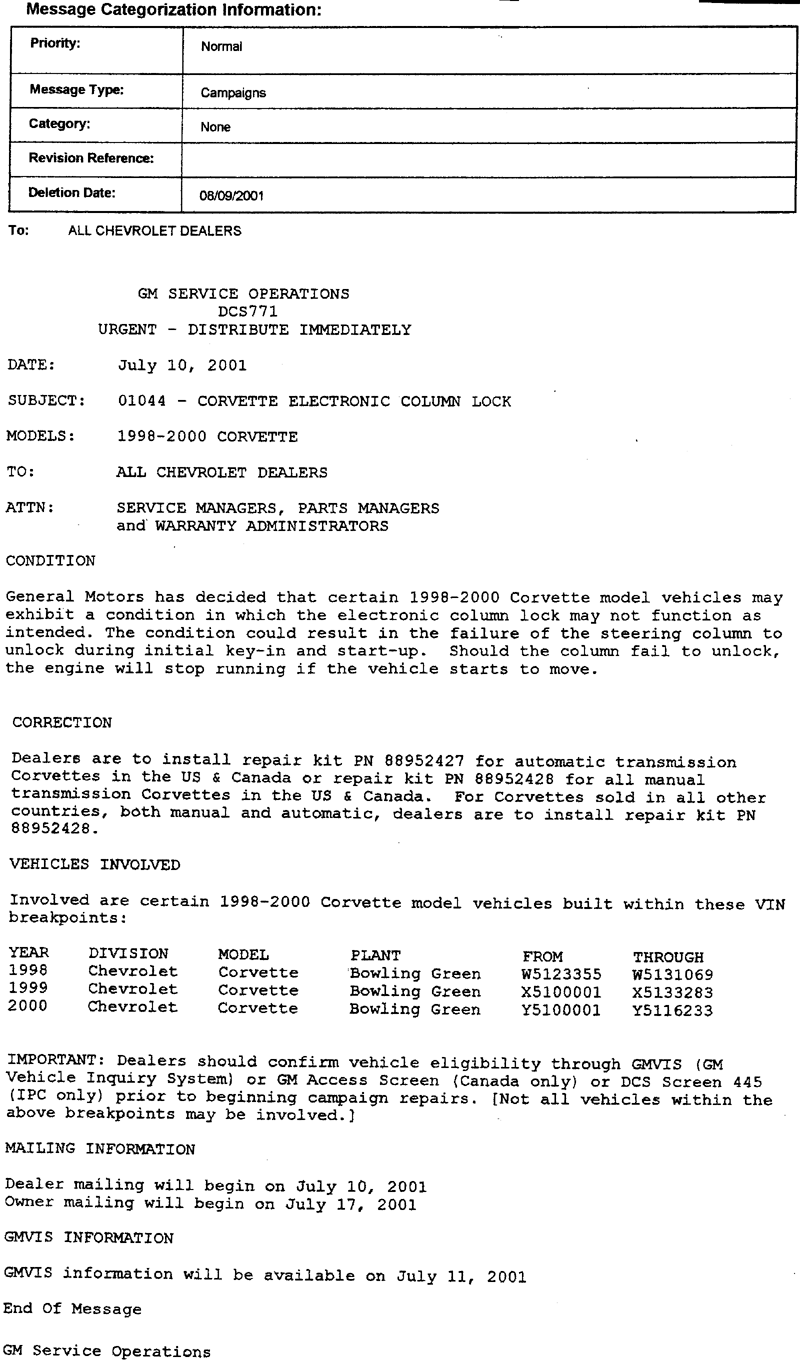 improvement will also be made on the 2001 LS1. Technicians have stated to
