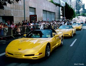 the fans can see their favorite drivers. Last year the C5 Registry led the parade that draws over 100,000 spectators in downtown Le Mans. The Registry will lead the