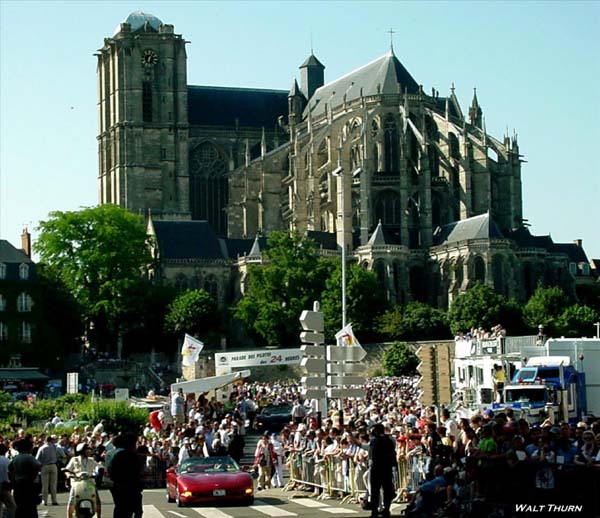 The Le Mans Cathedral is the starting point of the annual drivers parade in downtown Le Mans.