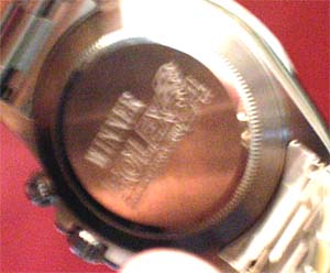 Back of watch engraved with "Winner Rolex 24"