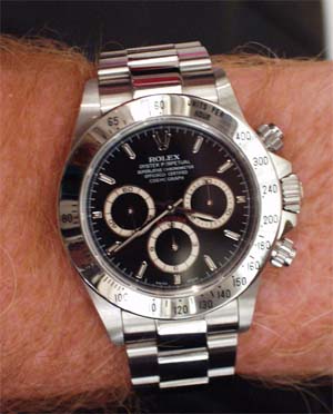 Johnny shows us his watch.. One of only four in the world.. Given to the drivers of the winning car at the Rolex 24 Hours of Daytona.