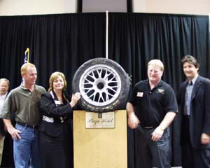 This years auction has Items ranging from this wheel and tired that Dale Earnhardt blew and signed during practice at Sebring (Sold for $10,0000)