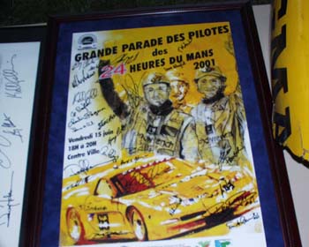This special quilt was hand made by Karen Hill depicting the 2001 racing season, and signed on the reverse by everyone involved in CORVETTE racing.