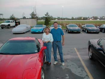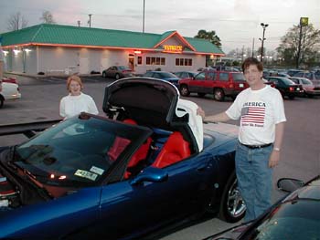 Bruce and Patty Robel show off their rare Electron Blue with Red interior and White Top..