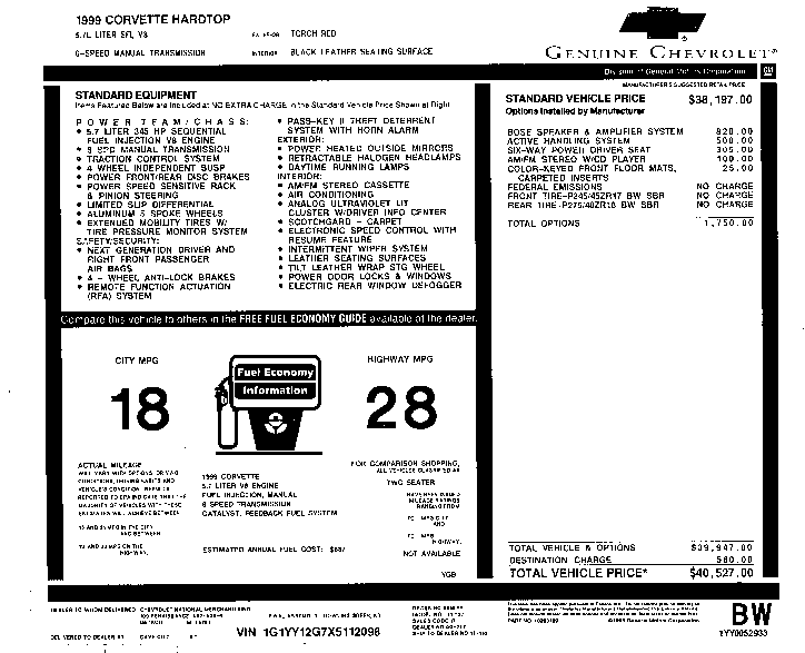 R8C deliveries for the 1999 Corvette year.