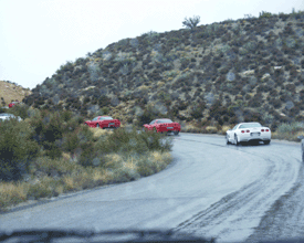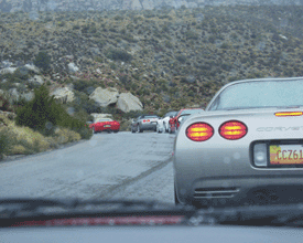Lining up to leave the park.. The C5 Caravan is ready for the C5 Registry Dinner at Sam's Town with the C5-R Corvette Drivers.